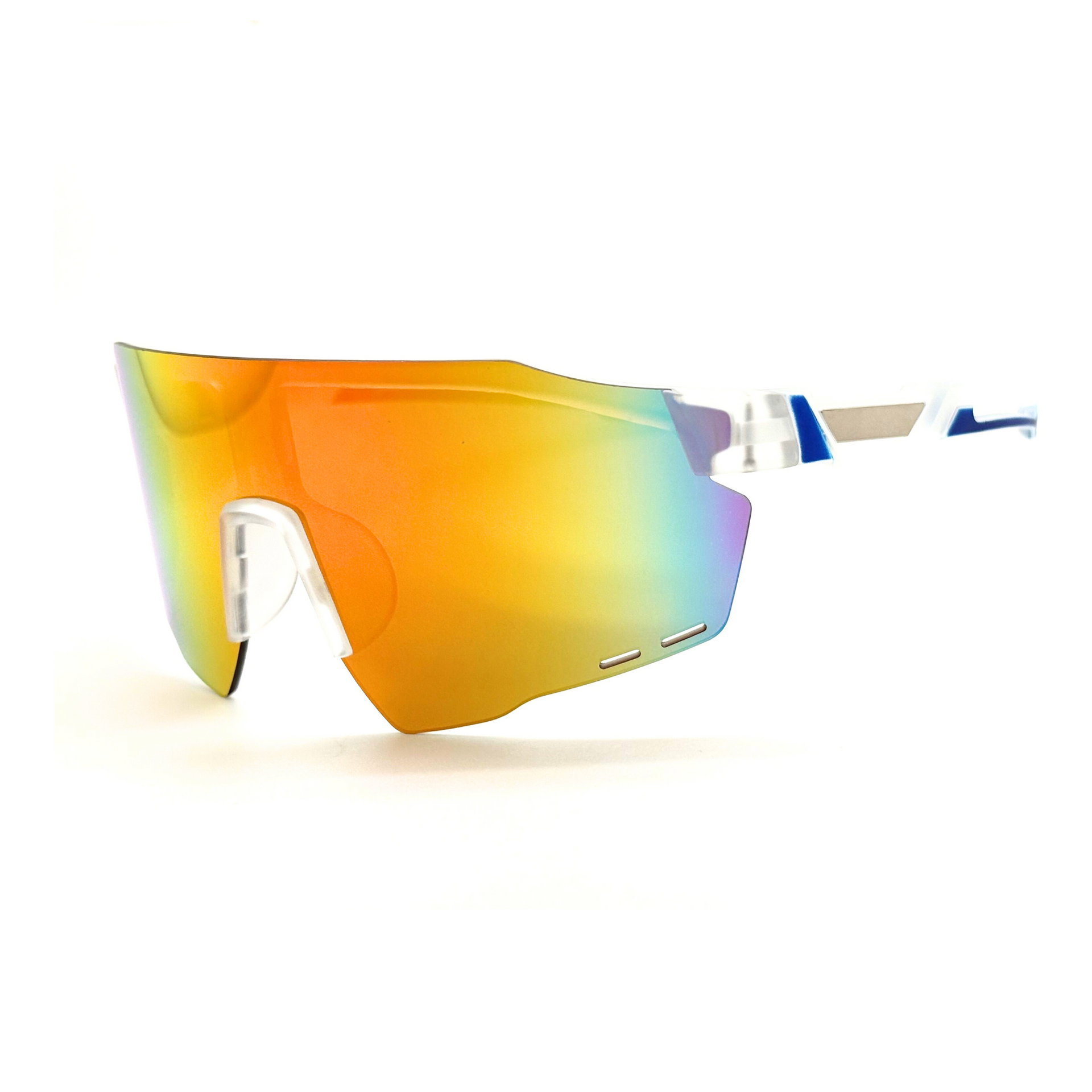 The Triomphe sunglasses are built for both high performance and style. They feature a sleek, one-piece wraparound lens with a vibrant mirror finish, providing polarized vision for superior glare reduction and clarity.