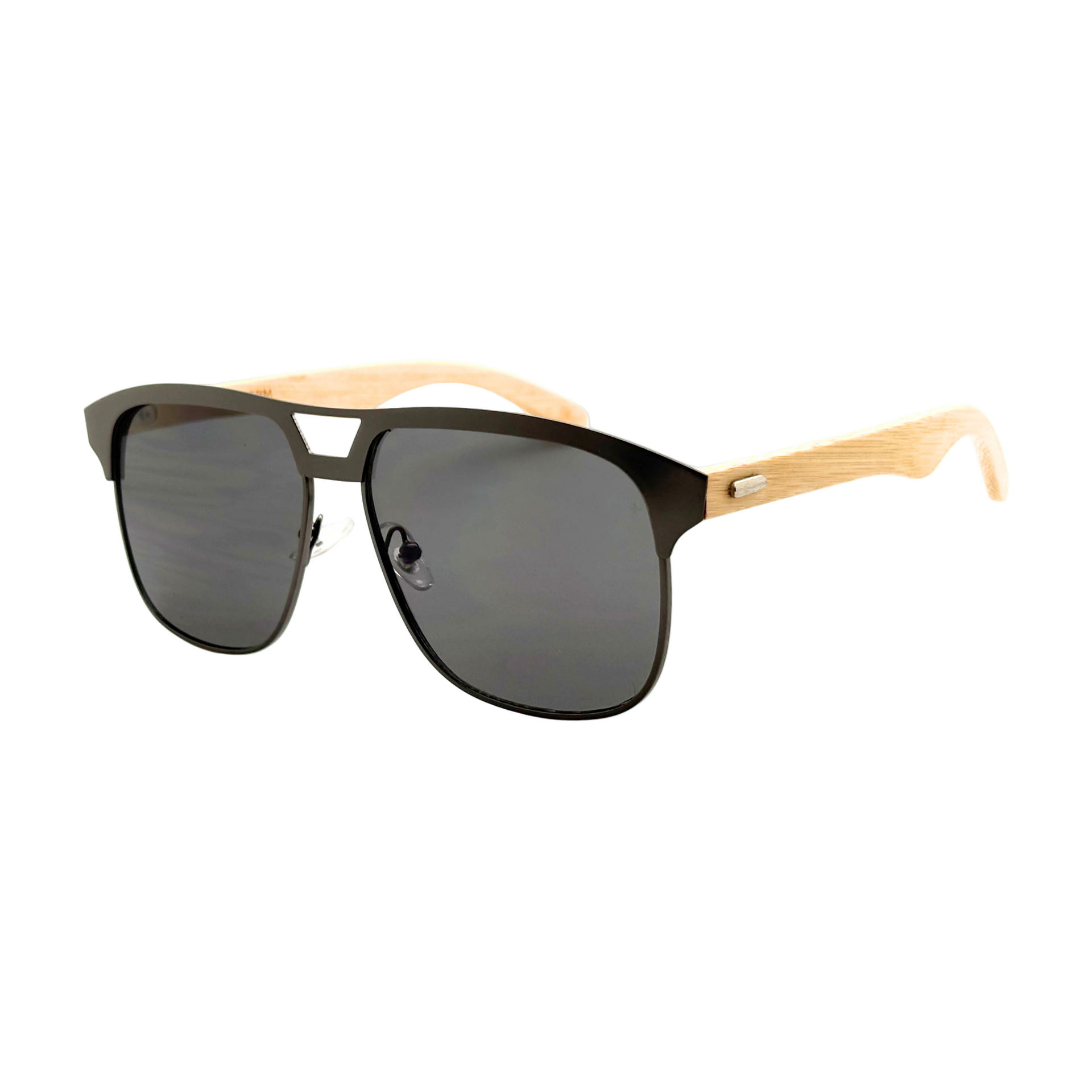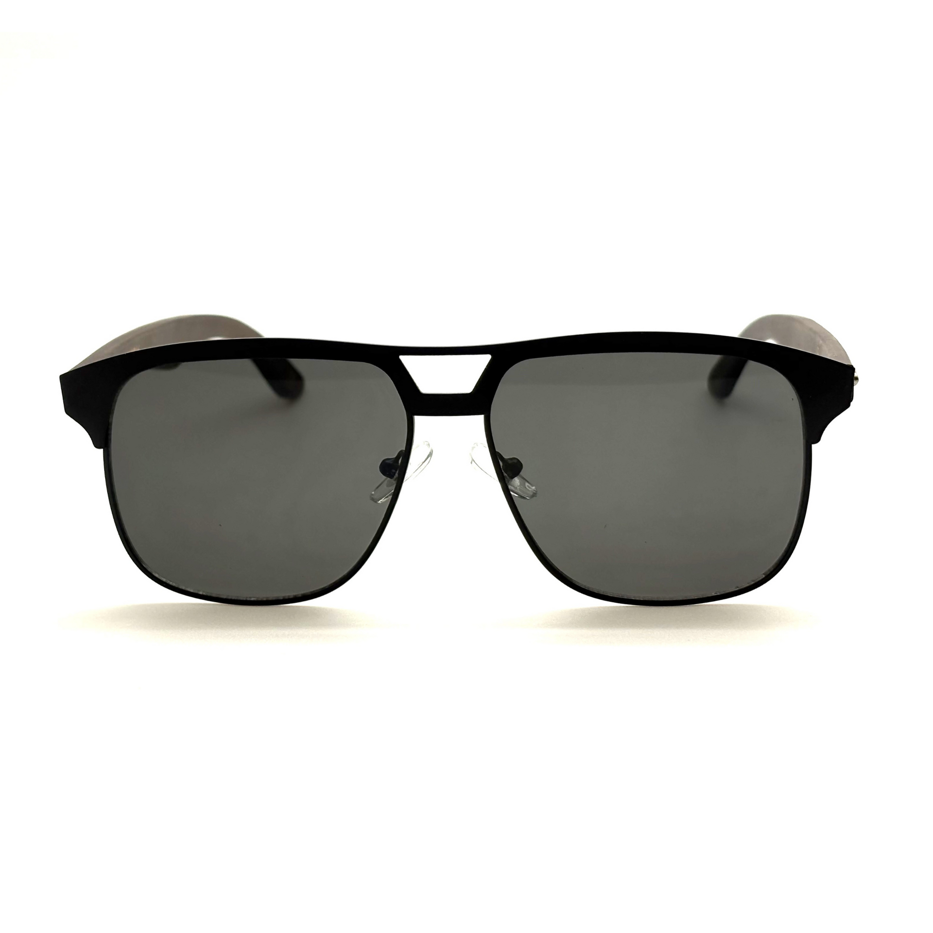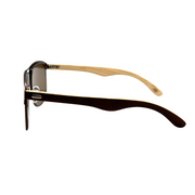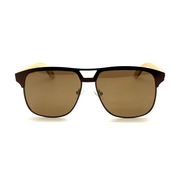 The Fausto sunglasses feature a classic square silhouette with a unique two-tone design, blending a rich, dark frame with elegant natural wood temples. This sophisticated style offers a modern look with timeless appeal.